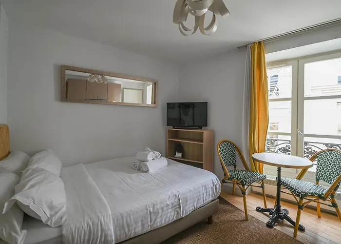 Die Unterkunft bietet Ausstattung zur Kaffee- & Teezubereitung sowie komplette Küche mit einer Mikrowelle, einem Wasserkocher und einem Kühlschrank an. Das French Typical Apartment befindet sich in unmittelbarer Nähe vom Bahnhof Auber.